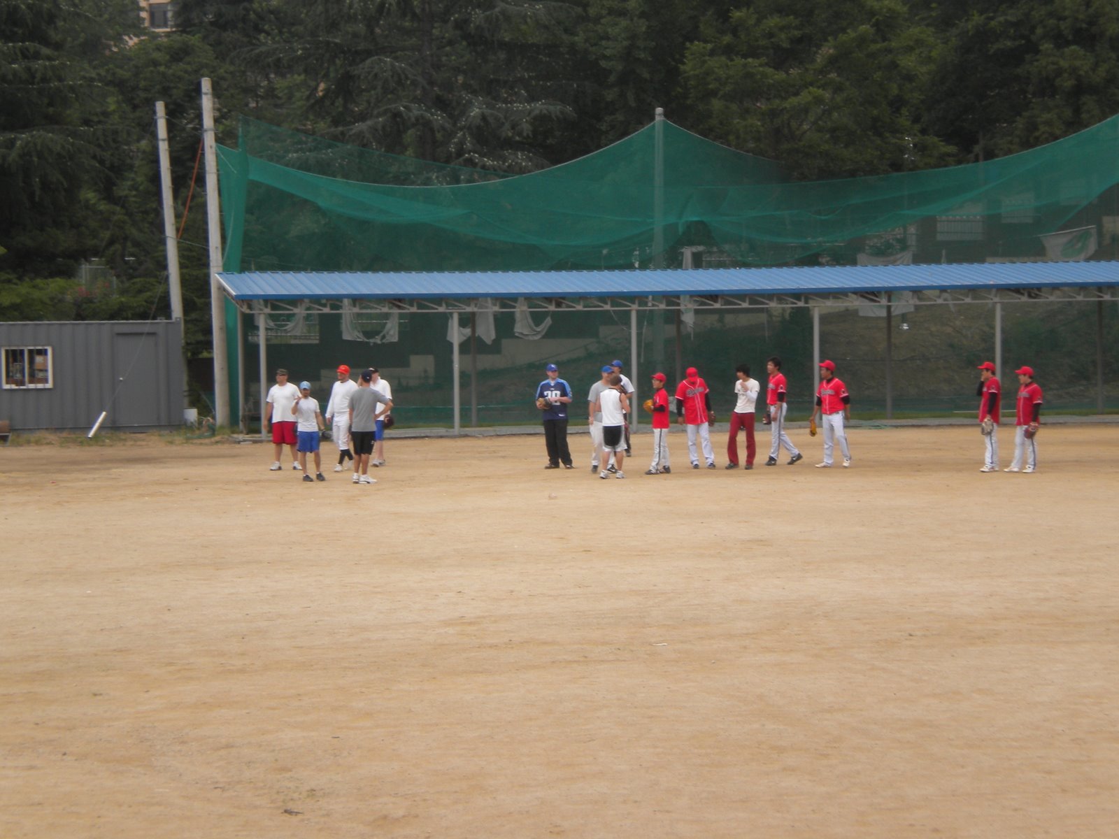 So around 1:15 the Koreans showed up and I practiced with them for about an hour before the usa squad strolled through. For me, the best part early on was that just by walking up to one guy and gesturing that I wanted to warm-up, he knew exactly what I was asking and before i knew it I was three deep waiting in line for my turn at infield practice. Without getting to deep, it felt like there was no real need for any language and that our common knowledge of the game kept everyone on the same page.