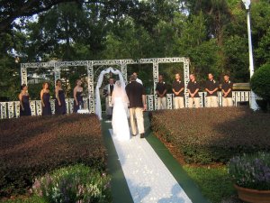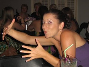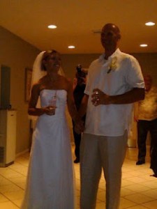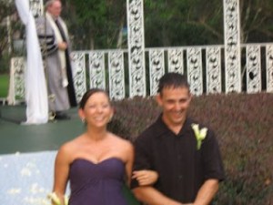 Friday we showed up early at her house, picked up 300 white roses and calalilies and brought them back to her house. We spray painted the tips purple, de thorned and de leafed all 300 and made centerpieces and our bouquets. The rehearsal went great although the priest was strict and didn’t like our shenanigans. It was quite hot out and Nicole got out her tears and we went back to her clubhouse and ate BBQ for dinner. For our bridal party presents we were given personalized martini glasses. I got a traveltini with the world on it and well had to hold back my tears as well. Her card was so sweet. I am so happy I made it back for the wedding.