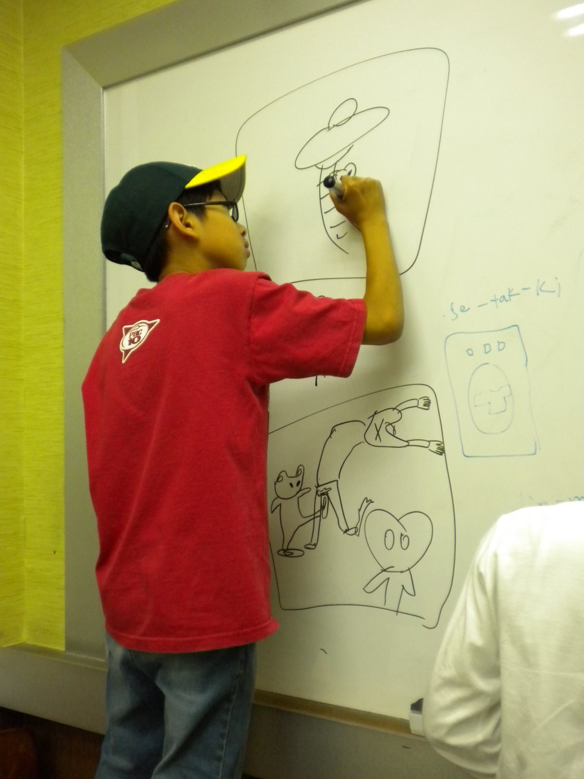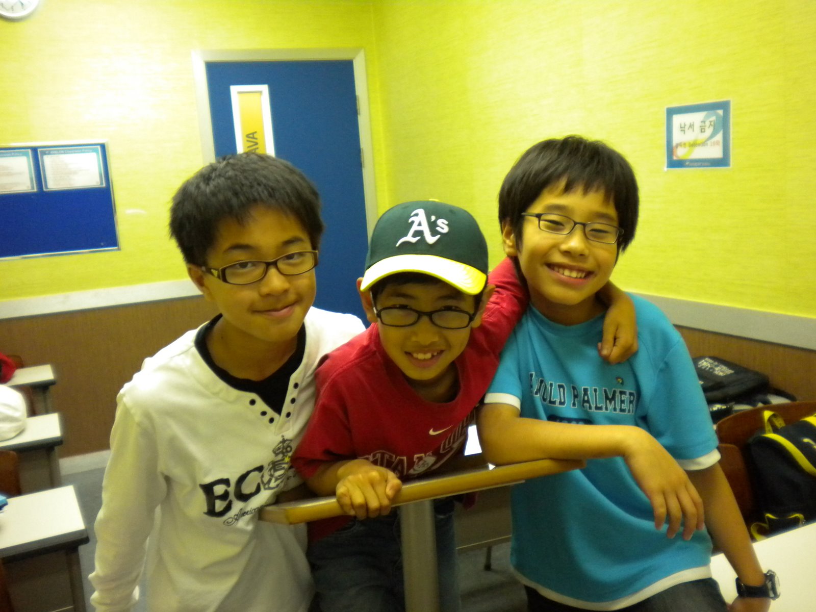 Allright and finally now that I have completely exhausted you attention span i thought i’d just give a few thooughts on my teaching experience thus far. For most of the day i’m prepping my lesson plans which are mainly laid out for me but I like to add some flair via games and interactive activities. The kids are pretty great and with the exception of a few occasions I have not had to repremand to many of them which is nice since i think they get enough of that from the Korean teachers. I’ve got one class in particular where the kids are obsessed with suicide and killing which is kinda disturbing but they are like 10 so its actually not that worrisome. Here’s a picture of a few of them. Pay close attention to the picture on the board in front the kid with the red shirt. He’s quite an artist. 😉
