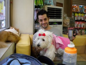 2 weeks ago after class we were downtown looking for a coffee spot which led us to a most interesting establishment. I don’tknow what it was called but we went into an upstairs coffee/pet store to relax and check out some fashionably amazing dogs and cats while we had a cup of joe. Nicole thought the place was amazing but theres just something about random smelly dogs from foreign countries sitting on my lap while I drink my coffee that just doesn’t turn me on the way you might think. I did however take a few photos for your enjoyment.