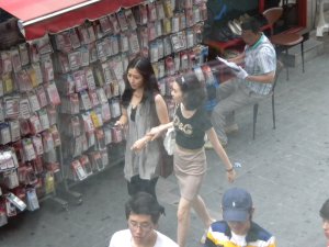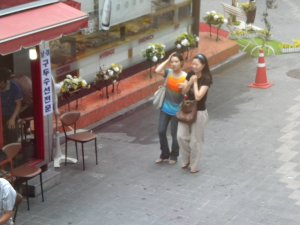 After our romp with the animals we worked up an appetite for some good ole’ american cuisine so we decided to check out the Burger King down the street to see how it compared to the states. Conveniently they have a “couples” combo that goes for about $10 bucks that includes 2 drinks, fries, nugget sticks, a whopper and chicken sandwich so we grabbed one of those and headed to the upstairs dining area to prove how American we really are and shove it all down our throats. While we were eating (which aside from the chicken sandwich tasted the same) we noticed a trend among the women walking down the street that was extremely common but certainly not something you see as much of back home. All the girls, and even older women are very touchy with one another….don’t get excited, i’m really referring more to the fact that they hold hands all the time and have to have at least one hand on the other at all times….ok, its a little exciting. Anyways, we thought we would be creepy for a few and snap a few of these lovers for your viewing pleasure.