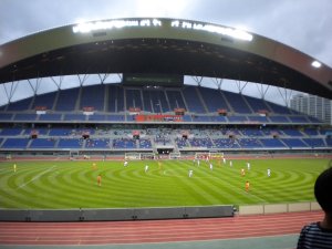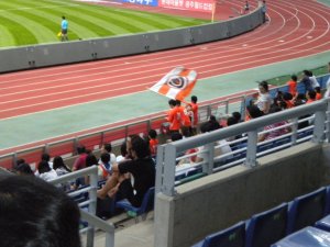 Finally, we got to catch our first soccer match at the world cup stadium last weekend between the Gwangju Phoenix and Jeju island team. The stadium was used for the FIFA 2002 World Cup and was really pretty impressive. The stands were pretty empty but the fans that were there were very passionate and that was probably partially due to the 50 cent beer and free refills the stadium was offering 😉 It was also ladies night so all the women got in free. i would have taken more shots but the battery decided to crap out early on me.