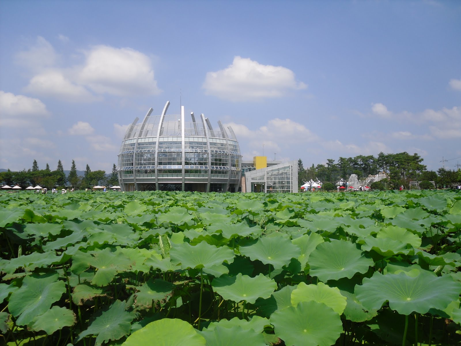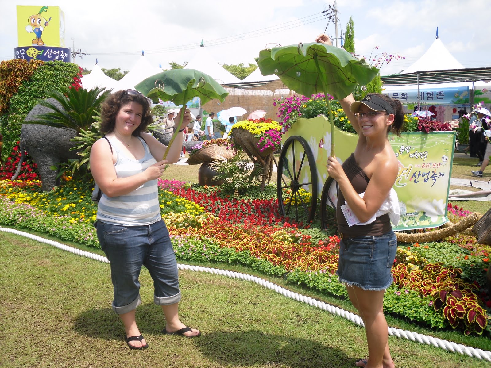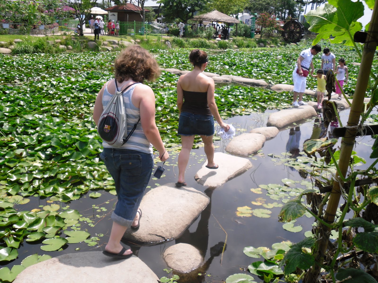 Yesterday was the 2009 Muan Lotus festival which was really very cool. We hopped on the 9 am bus and got out to Muan close to 11am after taking several other buses to get there but the weather was beautiful with the exception of the heat. The location for the festival is set basically in and around a tremendous Lotus pond that is covered with these huge leaves.