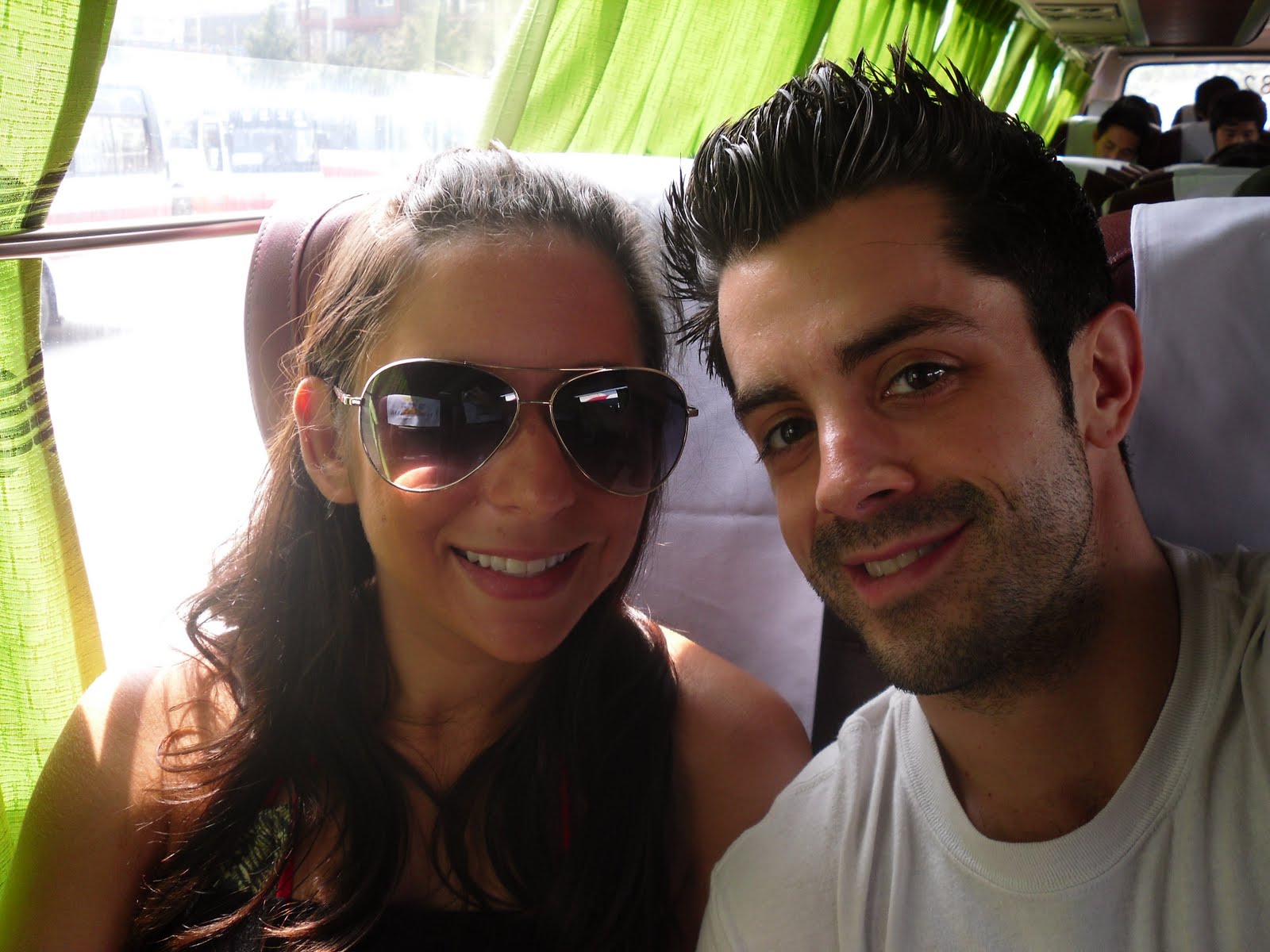 Now after some napping by me and reading by Nicole we decided to head out but no day would be complete without some random act of Korean kindness right? Right. So we asked at the beach pavillion what bus to take home and were told where to catch the bus by two very nice people and so we went to wait for the bus. The bus we needed was going to be about a 30 minute wait but after waiting about 2 minutes thise same two people from the pavilion drove up and offered us a ride to the transfer stop about 25 minutes away! Shocked, but knowing that in Korean culture its rude to decline we hopped in and got an express ride to the terminal. Here’s nicole trying to figure out how to write “we are very greatful for your kindness” in korean to them while we rode.