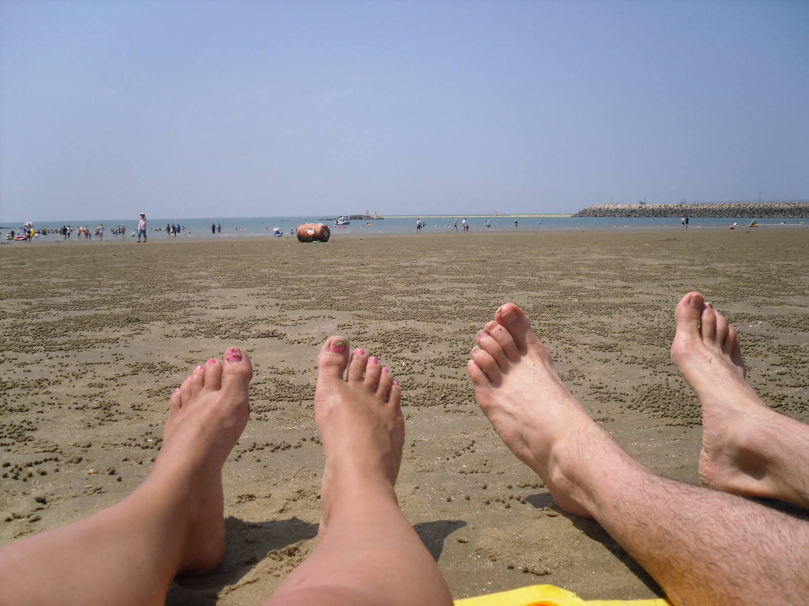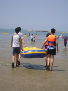 We found the sun, we found the beach and we found the asians (usually not an issue here), but the scantily clad part was a negative. In fact, not only do they all wear shirts into the water, some even wear heels! There were only about 5 or six people including ourselves actually laying on beach towels but even they had huge umbrellas. They love the water and their tubes though so most of the day the water was packed but as we have been made aware a few times before, the sun is not a fan favorite amongst Korean folk.