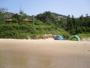 Some of our group chose to rent out huts for 35,000W for the night, but we decided to use our brand new tent. We set it up on a little patch of beach along with another couple.