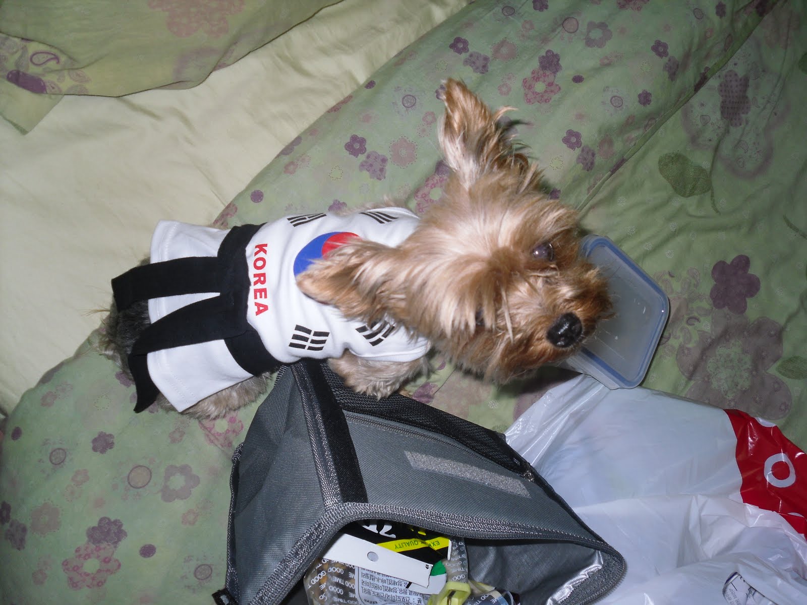 Yesterday Adam and I went downtown to catch a flick, G.I.Joe (so good) and picked up Olive her own Korean Hapkido Garb. She was even loving on Adam yesterday which shows just how good Korea is for her.
