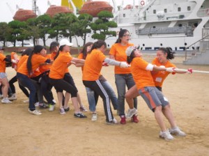 After the Arm wresting was the jump rope which was actually alot more difficult than most of the teams had anticipated. Something about getting 12 people to jump at the same time just wasn’t happenin. Gumho Avalon took this one (Red Shirts). Here’s a video of Bongsun Avalon coming up 4 jumps short but looking fanstastic doing so.