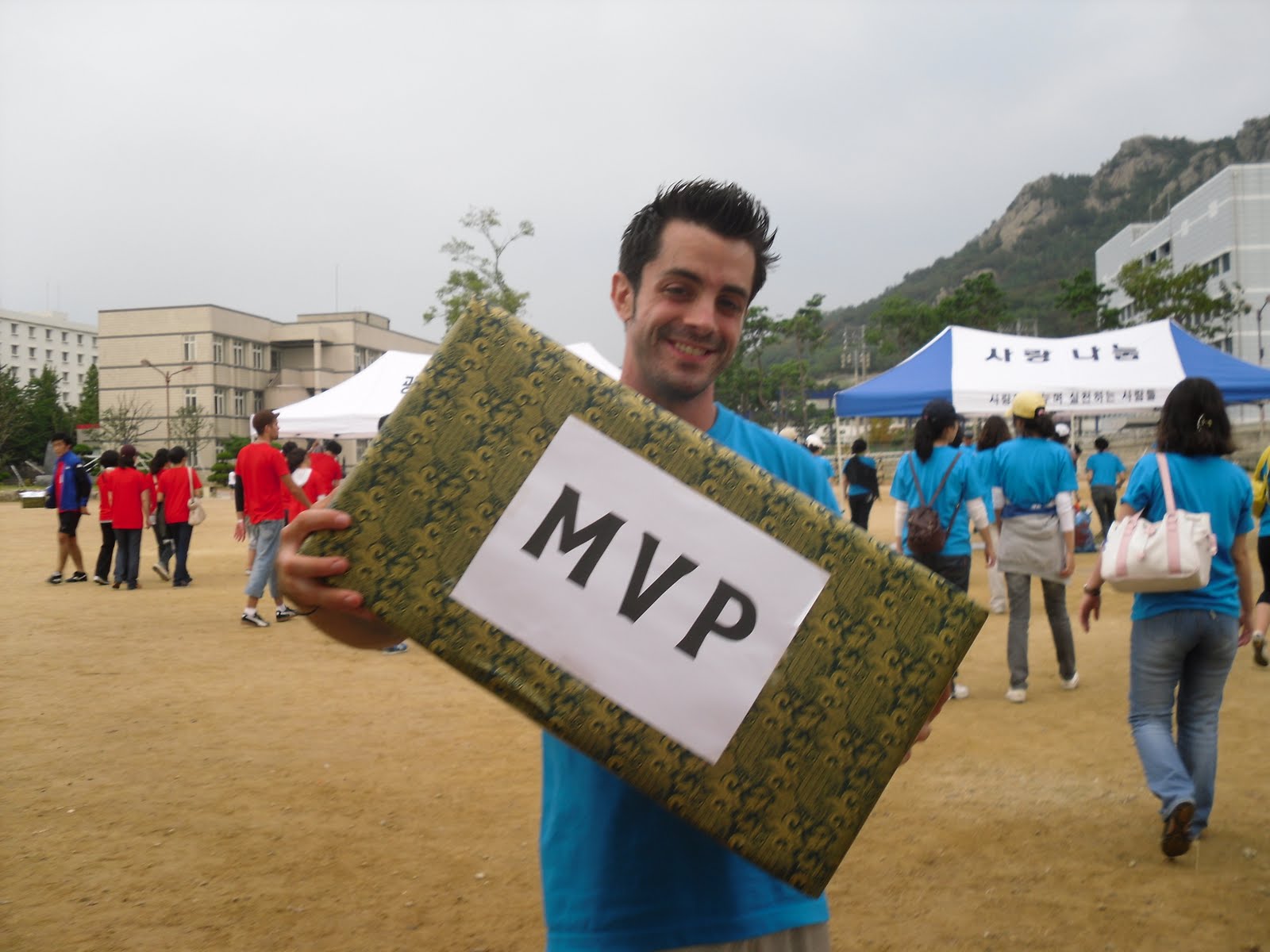 The relay was actually run twice as the first run was deemed to be short by 200 meters somehow. The final race was a thriller if i do say so myself with the Bongsun team trailing the Gumho campus after the first 200 meters. I was the second leg so i did my best to give us a push and in the end it worked as we took the gold and the overall champions seat!!!
