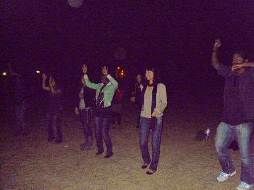 After the game we cabbed it over to a local park for a early evening picnic of beer, wine, pizza and chicken wings. As is the life in this strange land, we were greeted by a courtyard full of jazzersizing women. Not the greatest shots but it gives you the idea. A few of us attempted to keep up but quickly found out that this was not our scene and quit for the booze.