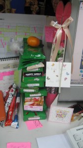 At school, most of the young students came with bags and bags of Pepero for the teachers, you can see my massive stack. Adam got some too, but the kids ate his before he even left the classroom.