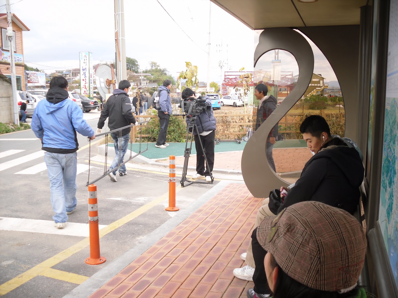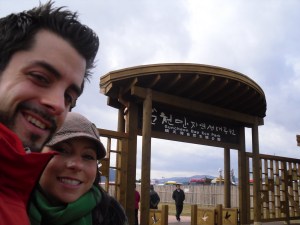 Unfortunately due a tighter schedule on Sunday we were not able to explore the folk villiage on the other side of town but before we left while we were at the bus stop we became instant television celebs as we were video taped by Suncheon City workers using a new interactive bus-stop information system to be aired in an upcoming local commercial…pretty sweet. Although we both realized after snapping at the film crew for not feeding us M&M’s with chopsticks that we weren’t cut out for showbiz……
