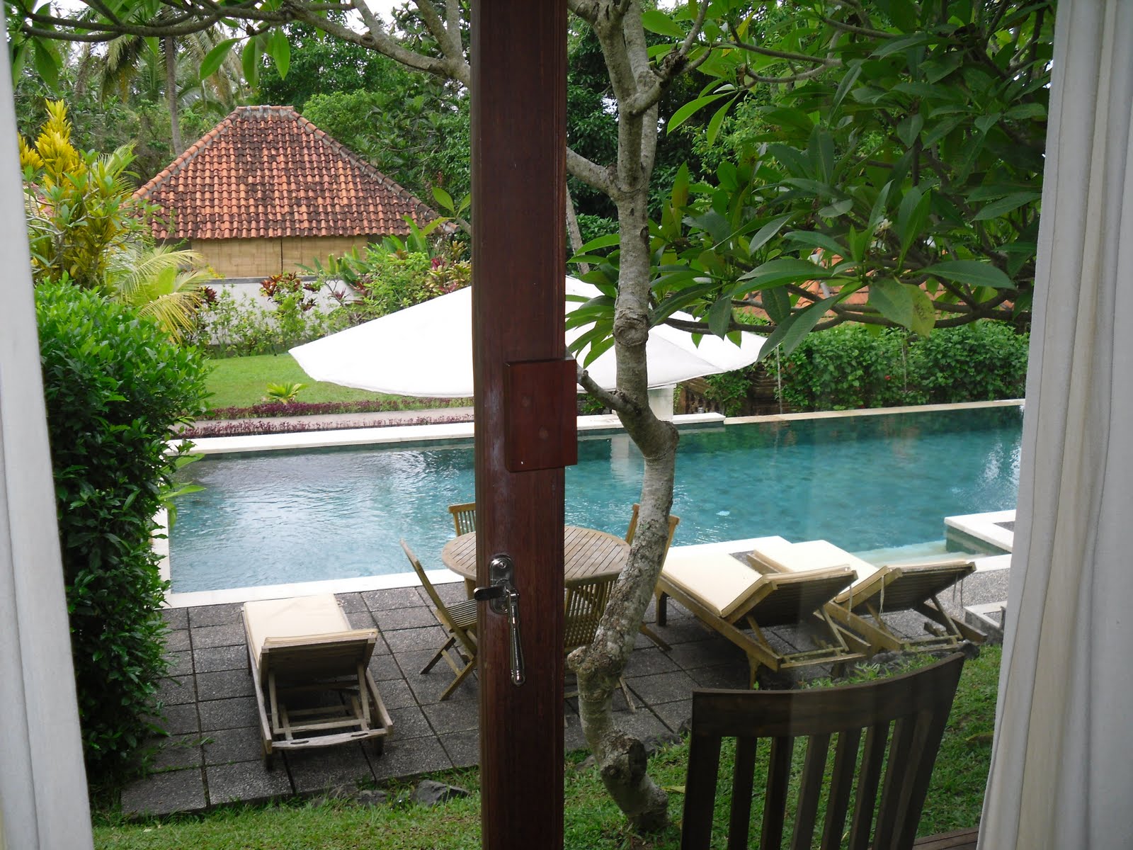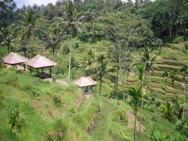 Food is inexpensive, Adam and I would eat at a fancy restaurant, 3 courses and a drink for around $20.00 inexpensive meals were around 1.80 a piece. The kids go to school 6 days a week from 7:30 to noon and are seen in teh streets playing or joining their parents at their stalls after school. Our hotel, The Bhaswari Resort was in the middle of the rice fields, about 15 minutes from Ubud. We were the only guests the first night so for $60.00 we had the room overlooking the pool. The room was decked out in flowers and beautiful homemade furniture. The staff was incredibly helpful and wanted nothing more than to make us happy. We had massages for $15.00 and were taxied into town for dinner. The staff was concerned we wanted to be in the city and offered to take us constantly, but we explained we like the natural peaceful beauty of their hotel.