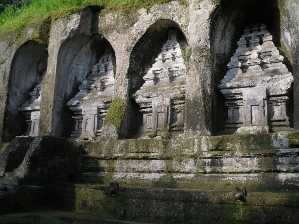 The next day, we went to Goa Gajah, an elephant cave, built in the 11th century and was once the home of a buddhist priest. Outside of the cave is a 1000 year old statue of the demonic goddess hariti, who once devoured children but later converted to Buddhism and became their protector. Above the cave entrance is a demonic face with bulging eyeballs who frightens away evil.