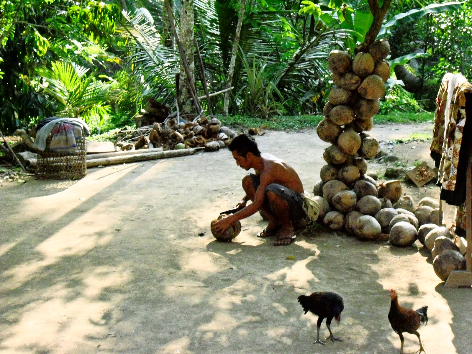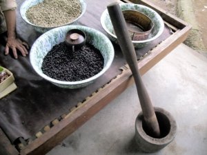 Then, Gusite found us a coffee plantation on the side of the road. We stopped and saw many different types of vegetation and fruit trees…snake fruit, pineapple, leechie berries, mango trees, cinnamon trees and many others. Then we tried local coffee, bought some ginsing coffee (so good) and tried the Kopa Lewak coffee. It is made from the dung of an animal that eats coffee beans and cherries and such. The dung is then processed and made into a strong thick coffee that is really expensive. They only create about 500 lbs of it a year.