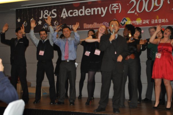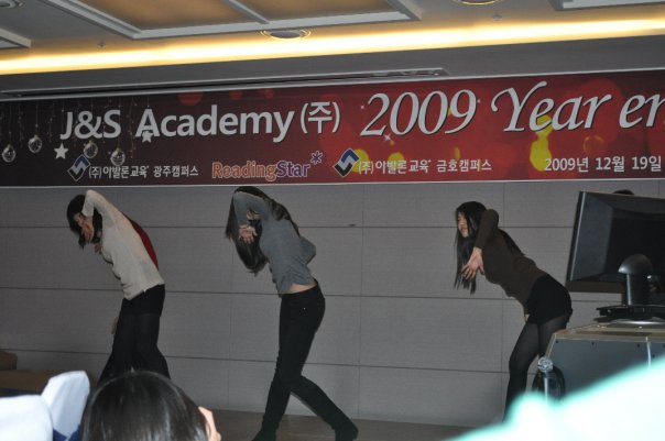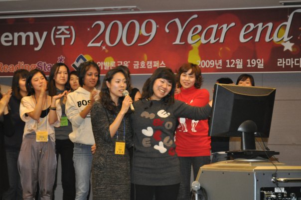 Fortunately, Nicole and I work at a language academy that tries to do right by its employees and part of that includes an end of the year party. Last night at the local Ramada we had out end of the year fiesta to close out 2009 and welcome the new year with some singing, drinkin, eating and group talent show.
