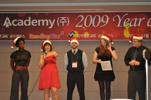 My group did our best to get the crowd involved by going with the 12 days of christmas and having the audience sing different days which went well with the exception of the confusion over who had what days and the overall melody but we got through it…..peep the vid to see the tomfoolery for yourself…… http://theseoulsurvivorsvideos.blogspot.com/2009/12/12-days-of-christmas.html