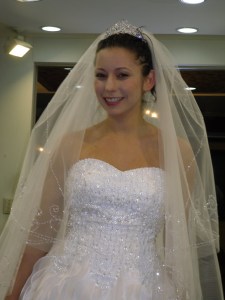 Yesterday some very fantastic friends of mine met me downtown and we attempted dress shopping. I think I explained earlier that Koreans don’t buy their dresses, they just rent them and they rent them from a company that does “the whole package” So, thank goodness two of my special Korean friends showed up too. We went into a boutique and after about 15 minutes of negotiation, $70.00 later, we were able to go in. All the girls sat on huge couches and I went behind the closed magic door with Giana. They had me put on these balloon silk pants that the women wear under the hanbok (traditional Korean clothing) and Fredrick’s of Hollywood type chunky white high healed shoes. I would put on a dress behind the doors, the woman would hit the open button and bam I would wait for everyone’s reactions…sometimes completely silent, other times ahh. I think I tried on about 8 dresses. Most were incredibly over the top with a floor length veil and huge tiara…but it definitely was fun. I do have more of an idea now of what I want for the wedding, but with our time frame who knows if we can pull it off.