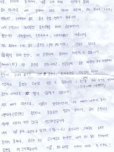 If you can read Korean, you can read my letters first hand and let me know if I missed anything.