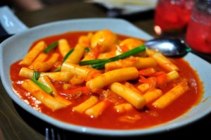 This is dukbogi. I was definitely not a fan when I got here…but now love it. The consistancy is weird and it is really chewy. It is rice…rice rolled and mixed until it forms a kind of dough. (they also fry this on the side of the road, or fill it will different things and serve it as a dessert) It is cooked inside of a really spicy thicker red sauce. The first time I ate it, i thought it was spaghetti, which may be why at first I thought it was gross.
