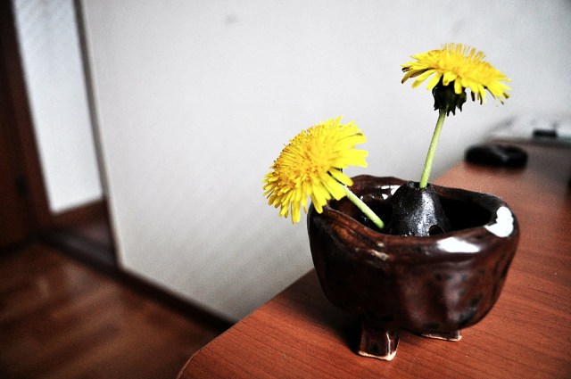This is the flower pot I made a few months ago…with live beautiful flowers, I know weeds, but still flowers, picked from the road…to brighten our days. I hope it brightens yours.