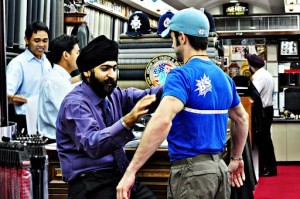 Yesterday, after a P90x workout and a nice hearty breakfast, we set off to find the tailors. Not just any tailor, but the recommended, hand made suit kind. We took the sky train to the Nana stop, onto Sukhumvit Rd…and found Rajawongse Clothier.