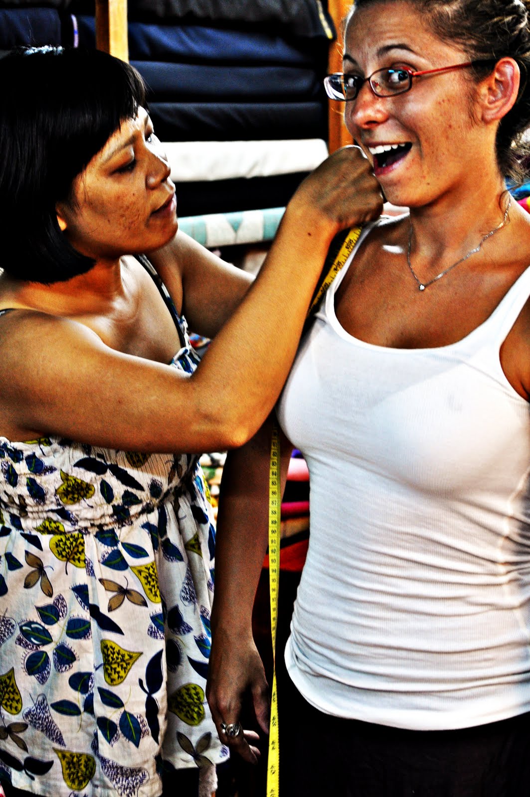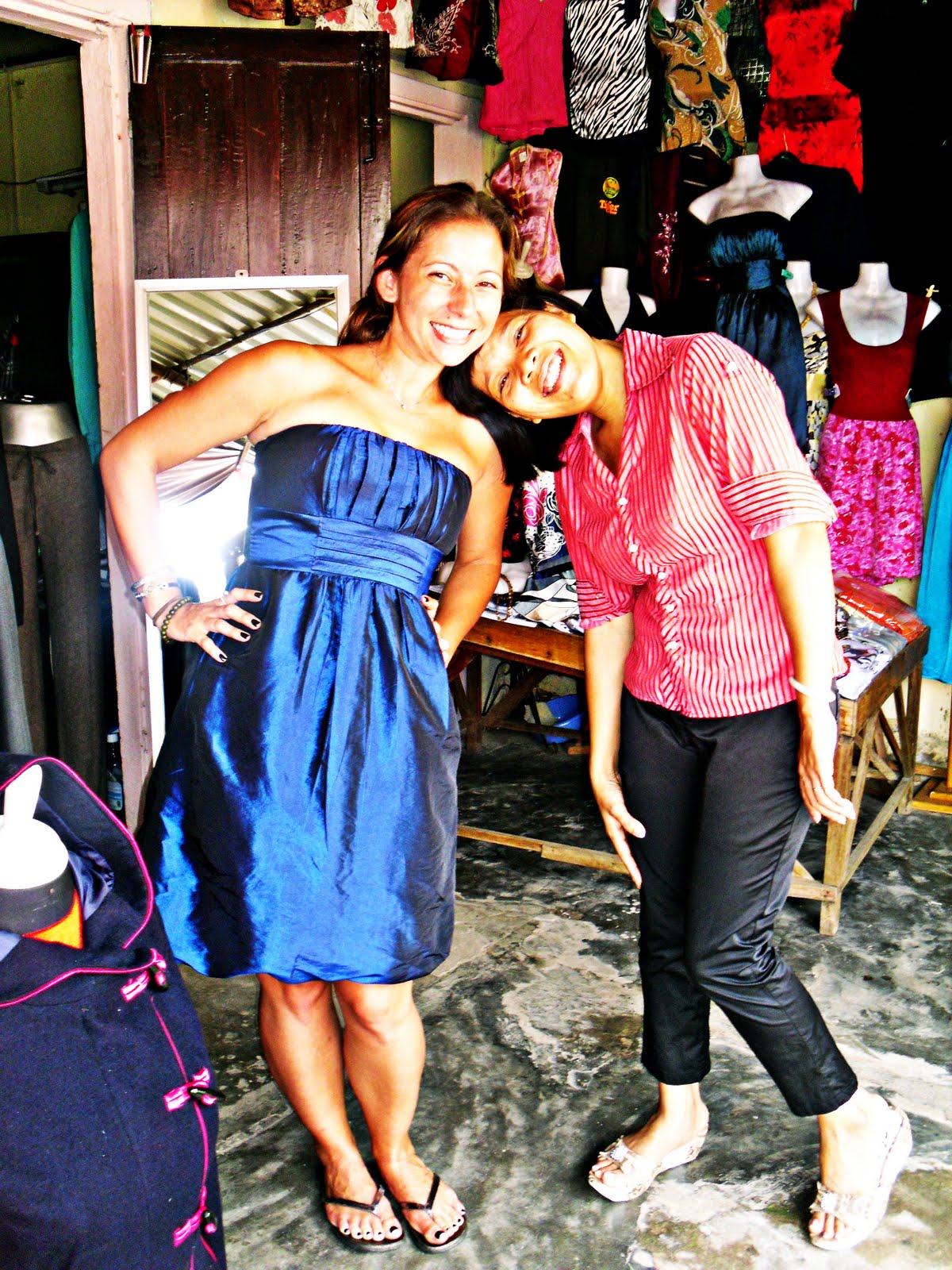 After some lunch we walked the streets lined with tailors, shoe shops and pretty much any other type of clothing accessory store imaginable. Nicole spotted a dress she fancied….yes, fancied, at a storefront and so we asked about the price and fabrics available. For a whopping $20 she could have the dress made in 3 hours and that was all we needed to hear as Nicole picked her color and fabric from the lovely ladies of Morning Mist tailors and off we went.
