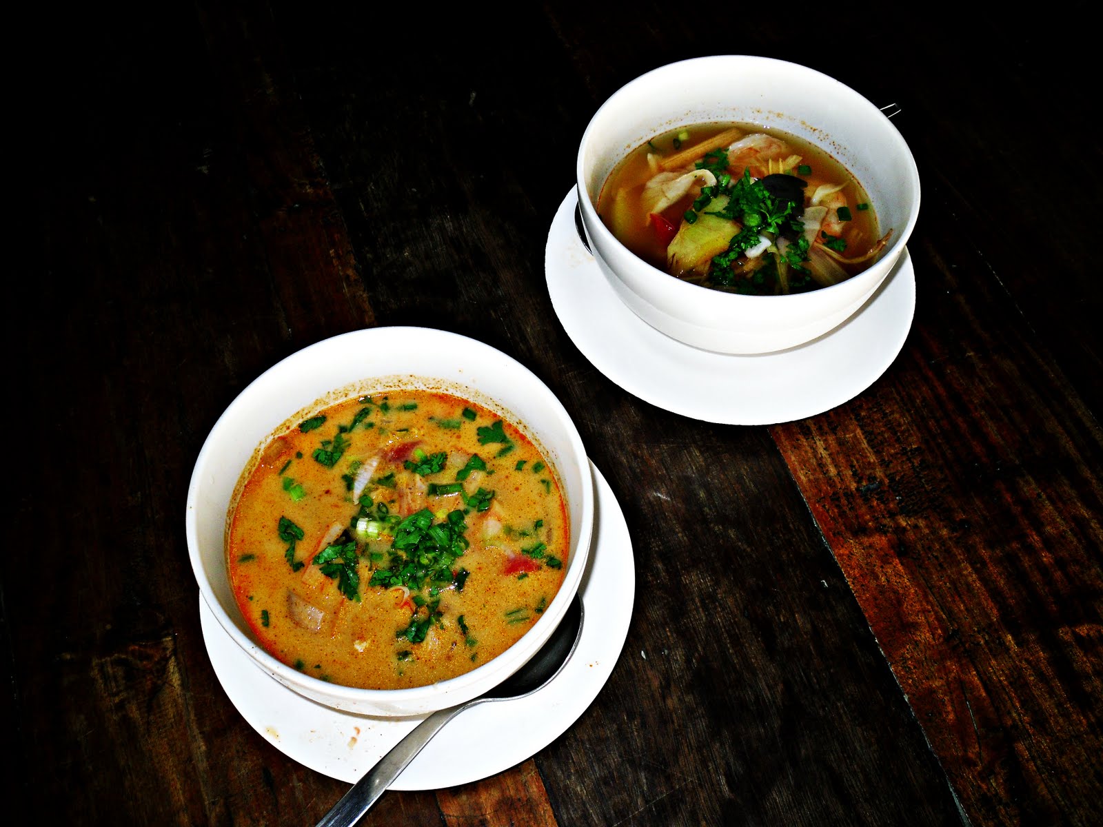 Fortunately, we were given extremely sexy and flattering aprons which was a major confidence boost for me entering the kitchen. Beginning with the appetizer soups, Nicole and I sliced and diced some veggies and then boiled it all together to create what really was an amazingly flavorful soup. And honestly, i think soups are lame and without substance but with the coconut milk and lemongrass, I had no choice but to give in and accept that it was in fact, awesome.