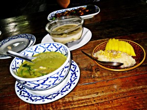 Finally we went to the woks and put the finishing touches on the curry. We also made with the curry our desserts. Nicole made sweet pumpkin and coconut milk while I crafted a nice team of sweet sticky rice and fresh mangos.