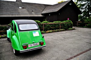 Silas drove us in his Mom’s 1983 bright green Citroen Duck up through