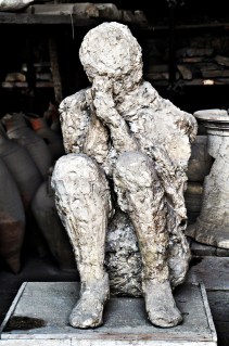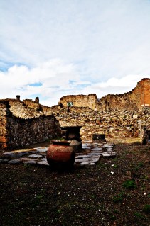 You can see where the kitchens and baths were, where houses were divided by walls and even where the large theatre and center of the city existed. The archeologists poured plaster inside of the molds that were created by ash and you are able to see people in the positions they were in when the devastation happened. You are also able to see the pottery and household items they had.