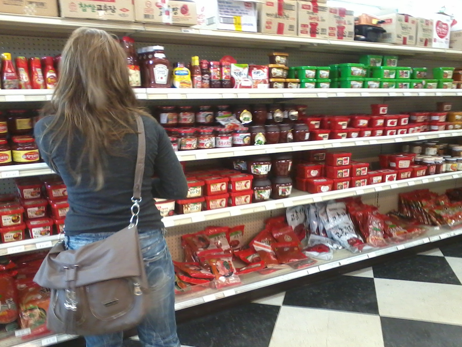The other day, we found a Korean Grocery Store, WooSung Oriental Market…the inside was just like Emart with the aisles of pepper paste and seaweed and smilie Koreans wondering how we could read the Korean on the packaging. The store said it was Oriental, but 3/4 was all Korean and the rest was a mix of Chinese and Thai.