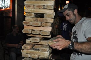 The 1-up features over 30 vintage arcade games (1985 and older), 2 lanes of “Original” Skee Ball, and 8 pinball machines. In addition to our mechanical games we also offer “Giant Jenga” which can be played on any table!! Adam really liked to push the envelope on Jenga, Darryl liked to take risks and remove the hardest piece and I just went with the flow. When the game falls though you definitely should back up…blocks of wood are loud and dangerous when the tumble.
