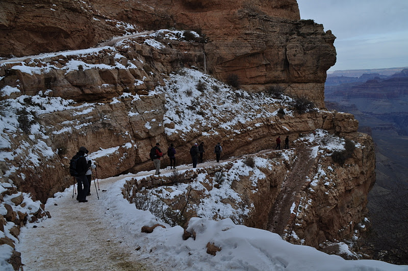 Early in the morning of day 4 we hiked out on the Southern Trailhead down the slippery ice and into the canyon. We only descended about 1500 feet, (the Grand Canyon is like 7000 feet or something ridiculous like that) but the view was incredible.