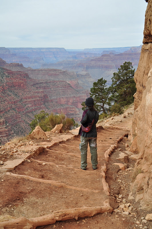 After a brief setup, we got really good at setting up the tent, we headed out to hike around the rim (not the whole thing…only about 3 miles) of the Grand Canyon. The one bad part about the time of year we chose to hike was the early setting of the sun. It seemed to give us not as much time to play, earlier bed times and much colder temperatures.