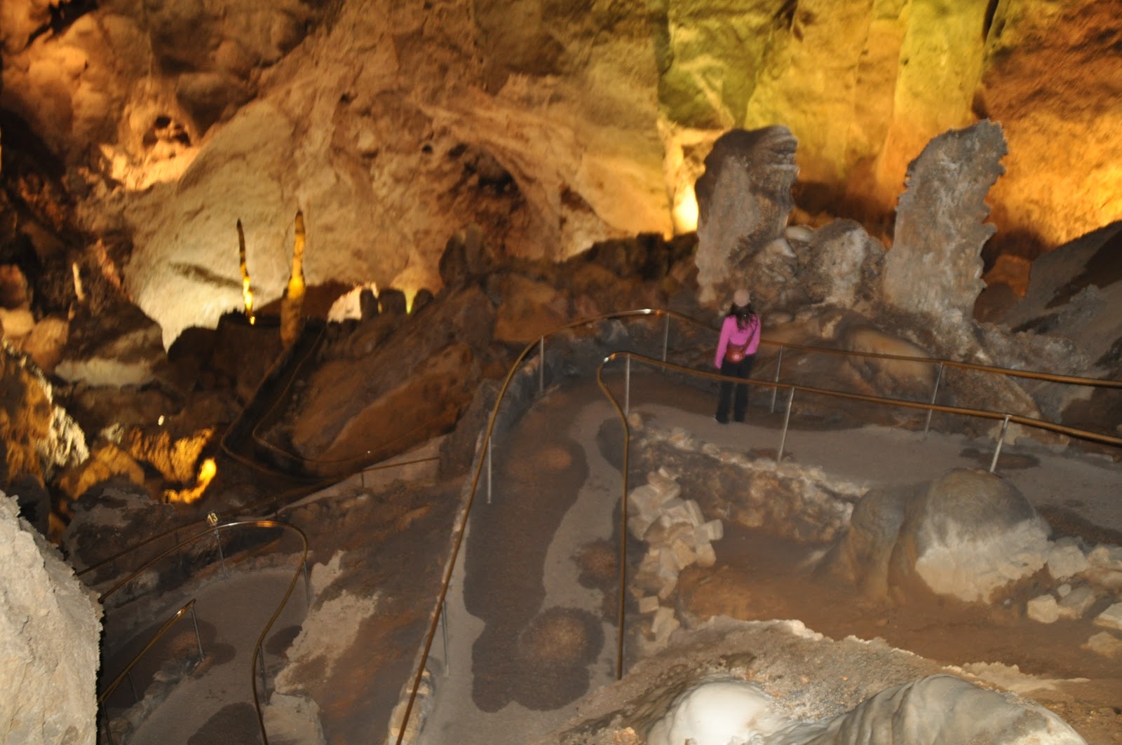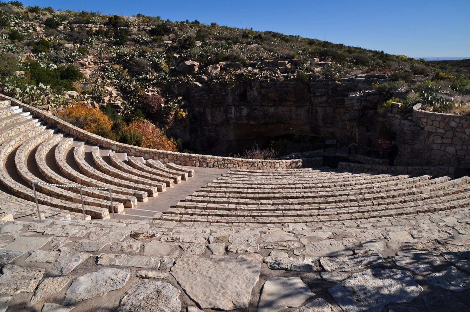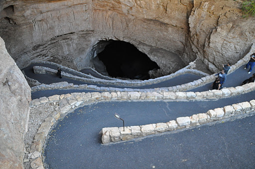 This here is the amphitheater looking down into the caves and below is the walkway down into the caves. We got to Carlsbad Caverns right as they opened at 8:30 am. There was a line to hike into the caves. I highly suggest going later in the afternoon though. At sunset, everyone sits in the amphitheater and watches the thousands of bats fly out of the cave at once, which I think would be very cool.