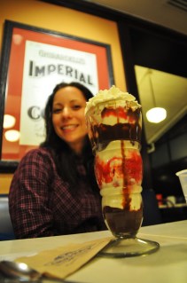 Our night was only short one detail however, and so we hiked a few blocks over to the Ghirardelli chocolate factory for a hot fudge sundae. Needless to say, I will pay for this later at the hotel, but holy good chocolate god of mercy was it awesome.