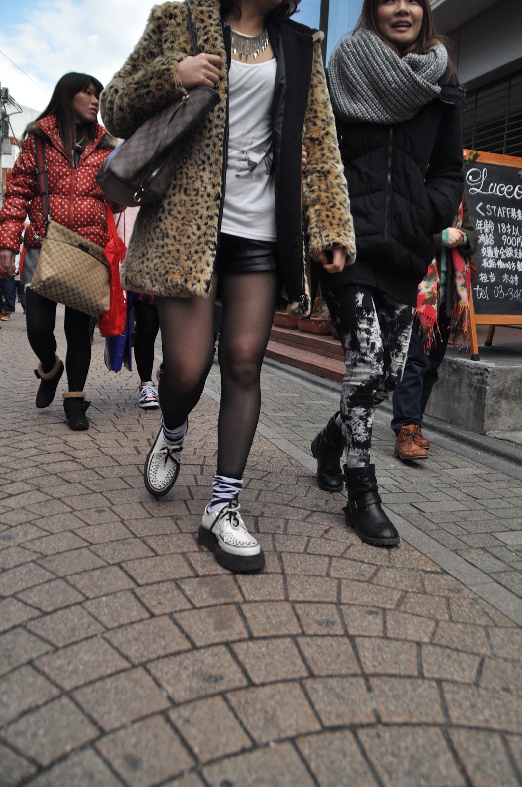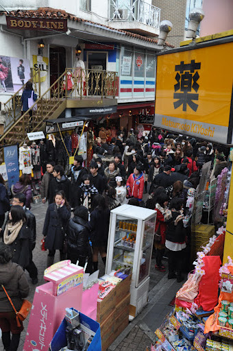 Harajuku….known for its fashion prowess was quite a scene. Hoards of people wearing a combination of things that might be sacrilegious in some places but made to look somewhat reasonable strolled through the narrow shopping district that included everything and anything the diva boy, girl, or dog could want. If I had my hand on the trigger I could have snapped a shot of a Dachshund wearing little sunglasses (and liking it) as he strutted in his little jacket next to his owner.