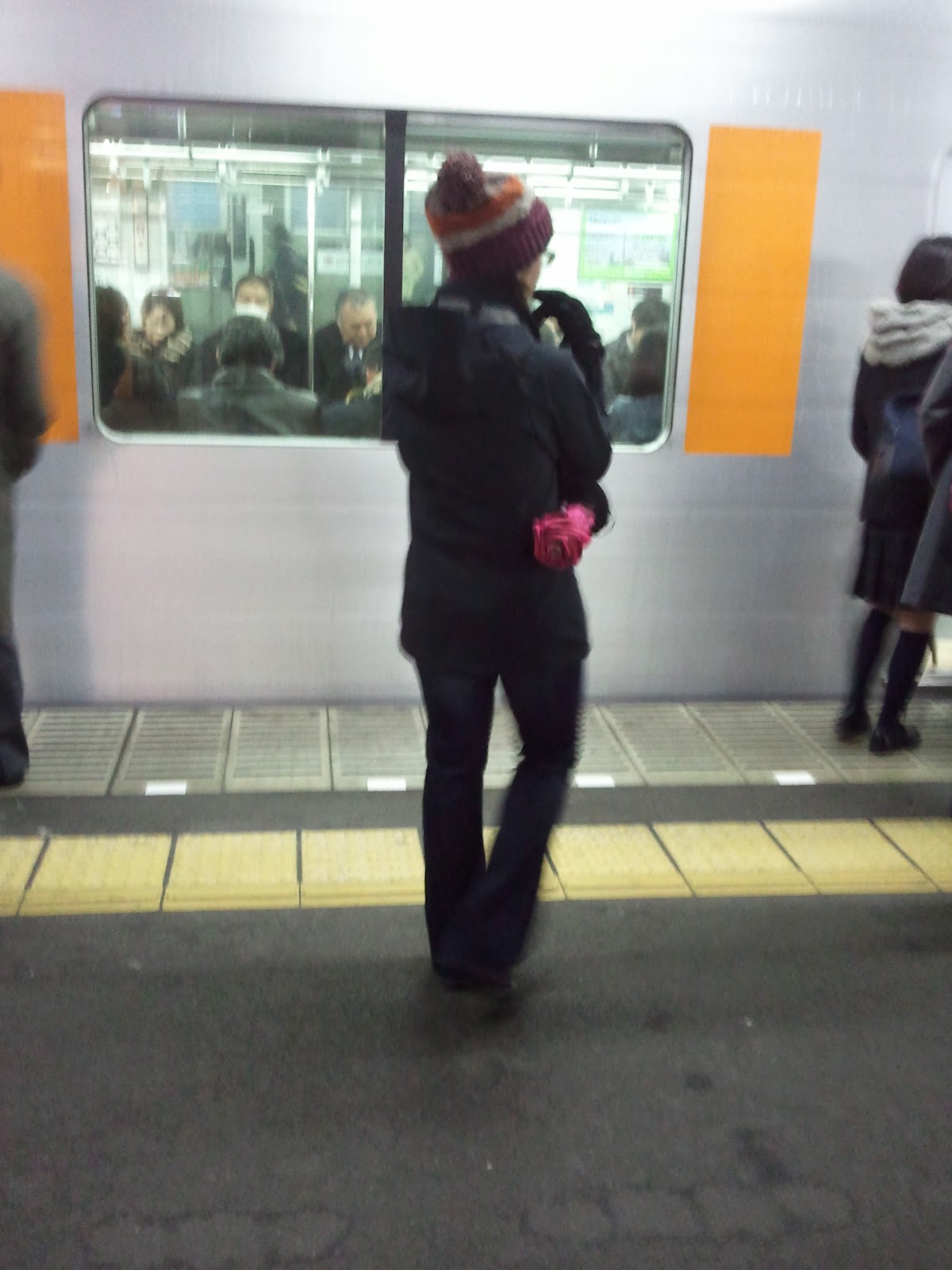 Today was the kicker. Those of you who know me, know I have a bit of a claustrophobic nut job thing in me. (Me debating on whether to get on the crowded train or not…and this one isn’t even that bad!) and Adam once we were inside