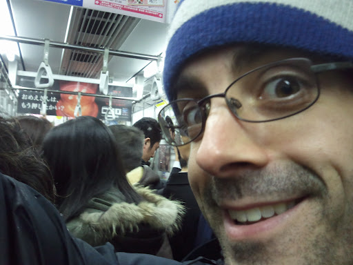 We were on our way to Kawasaki on a JR line (which seems busier to me) and the train kept filling up with people. I refused to be in the center of the car, so I stuck myself next to the wall, held on tight and watched as the people pushed Adam farther and farther away from me to get on the train. This is what I felt like…but thank goodness no one here would dare show off their armpits (Brandon, you know how I feel about Armpit hair)