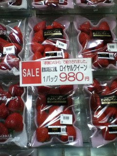 980 yen is equal to $12.01 …thats 9 strawberries. When you break it down its $1.33 a strawberry. We did not buy them. (do you see they are on sale!)