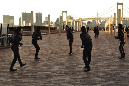 Here a few guys dressed as huge Elvis fans twisted and sang out on the promenade. You can see Tokyo in the distance