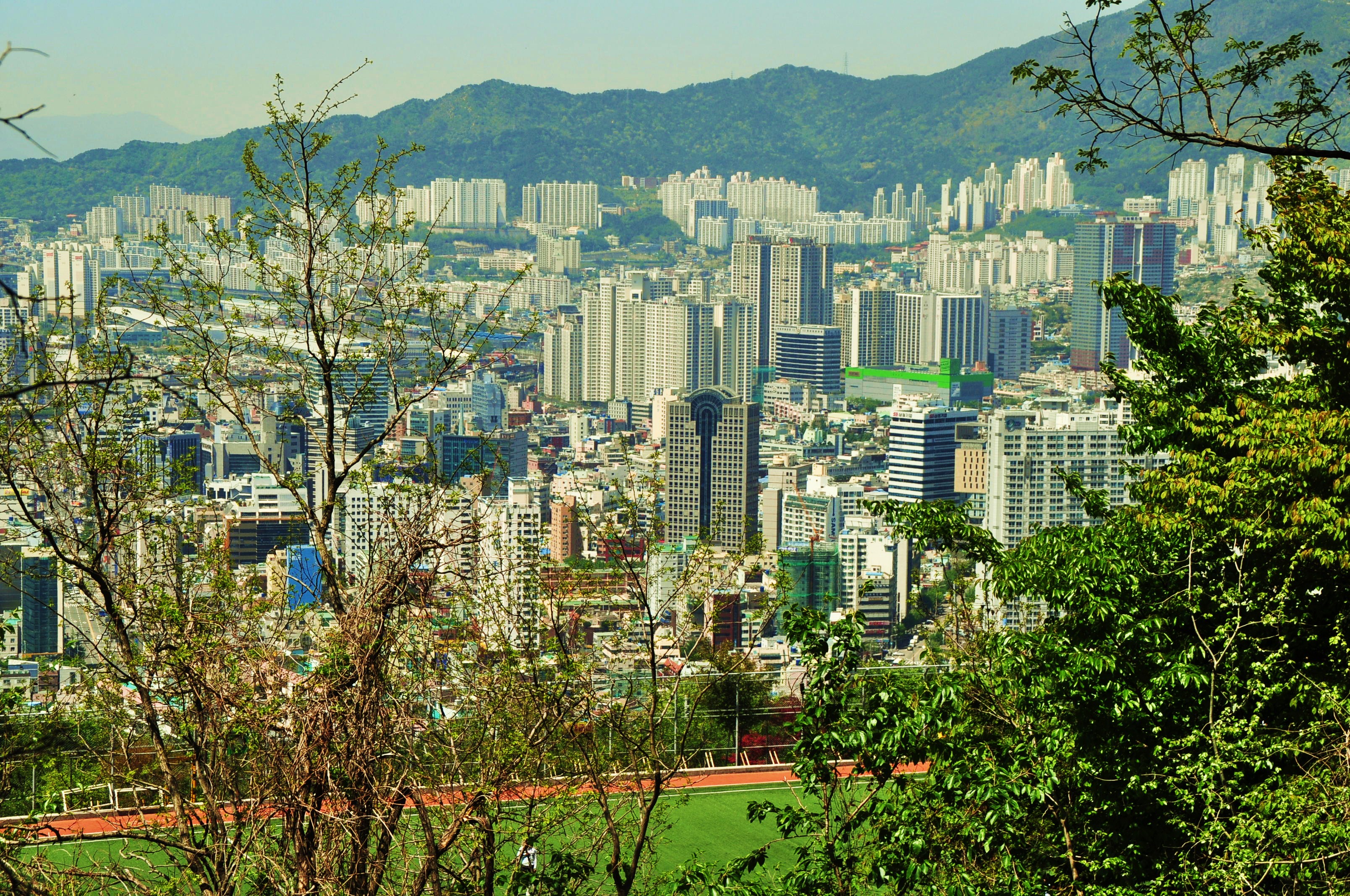 Working off about 12 pounds via sweat is a rough way to start a workout but that doesn’t seem to stop the gents that I met at the top. So, I followed suit….used my towel often, and had myself a workout with a skyscrapers view of Busan.