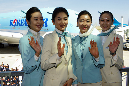 So, I sat here last night and found all of these articles on women lined up at hotels in Seoul waiting for their 30 second once over to see if they pass the appearance test. I found out there are hogwans (or private tutoring centers) to teach Flight Attendant Skills.