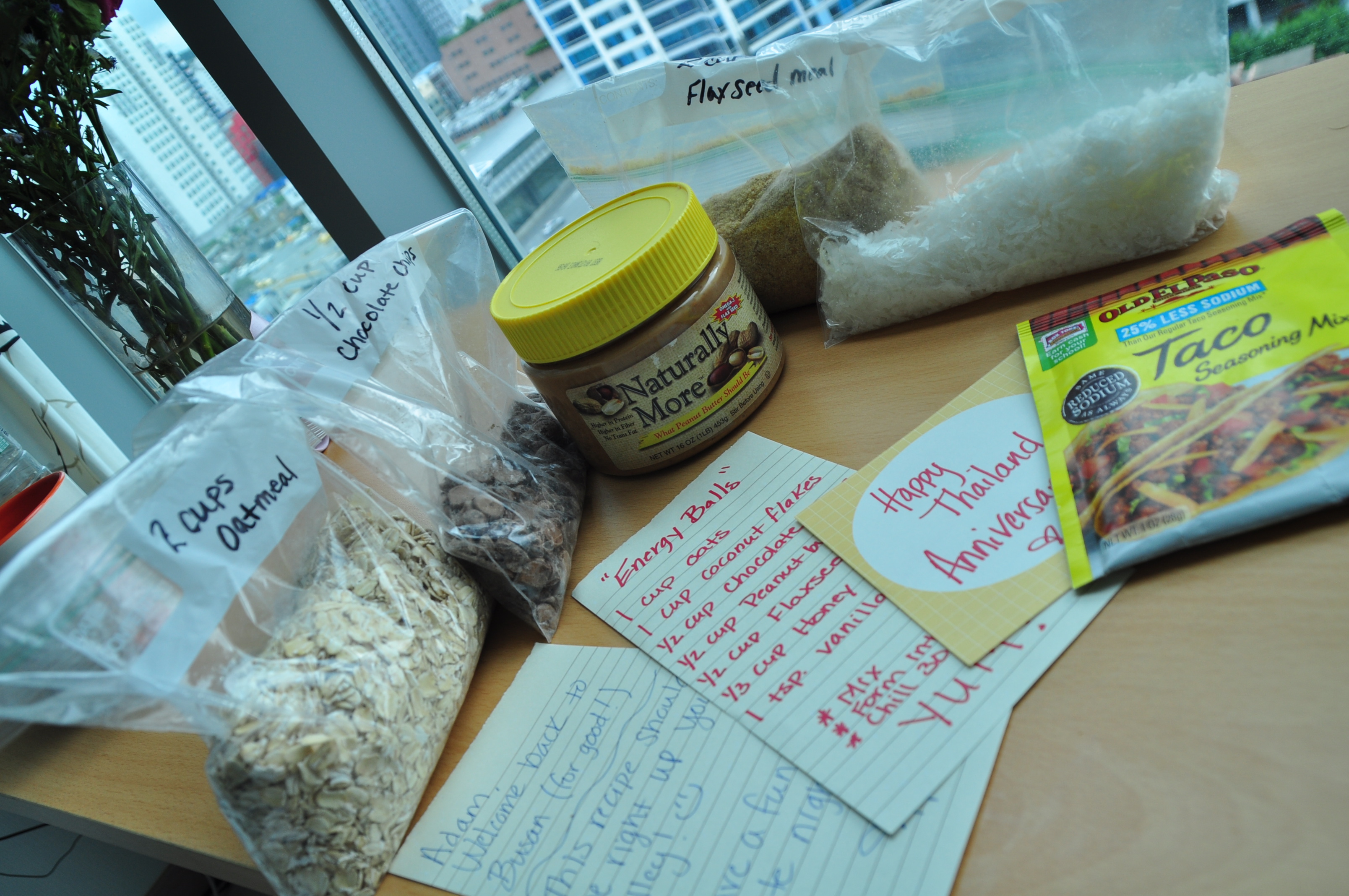 Getting packages is always nice but its pretty much awesome when you get one while abroad from friends and family back home. Today I received a “welcome back to Busan” care package from Nicole’s best friend Nicole and her husband Nick in Kansas. A very thoughtful combo of ingredients was included for me to make my own “Energy Balls” from scratch. She also included some taco seasoning, which as many of us Soko dwellers know is not an easy find.