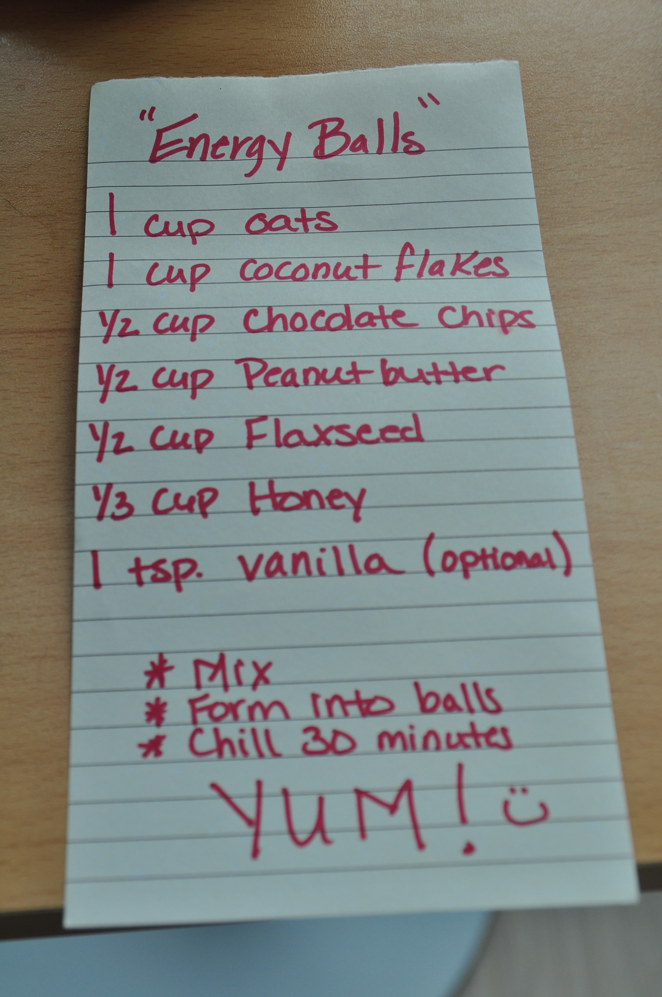 The healthy recipe is pictured below for those who have a sudden hankering for balls….Energy Balls. Thanks again guys, you are most excellent!