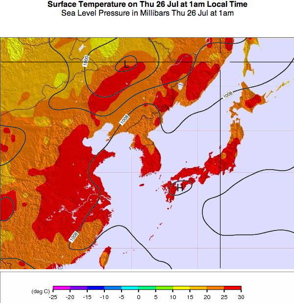 Weather-forecast.com also has some fun maps to help you keep up with the regions weather haps. http://www.weather-forecast.com/maps/South-Korea