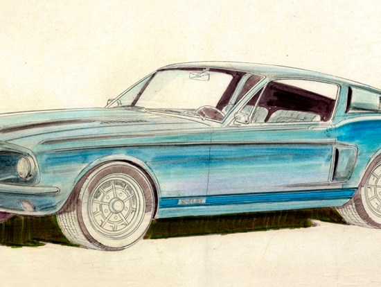 John’s boss, Carroll Shelby would routinely stop in and ask to see what he had come up with. On a few occasions John recalled Shelby asking to borrow a few of the renderings but never returning them so he had to start over each time. Not bothered in the least by this, John enjoyed working for a visionary like Mr. Shelby. His ideas for the 67 stuck, as did his work on the 68 and 69 models.
