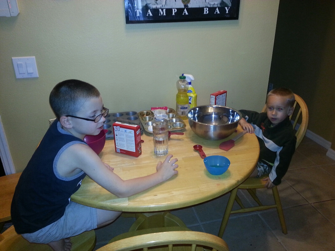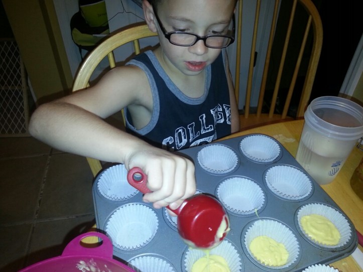 Yesterday my nephews and I decided to make cupcakes. Brayden, the youngest turned 5 today, so we wanted to make them for his class. Of course I couldn’t leave Bryce out, so he made them for his class too.