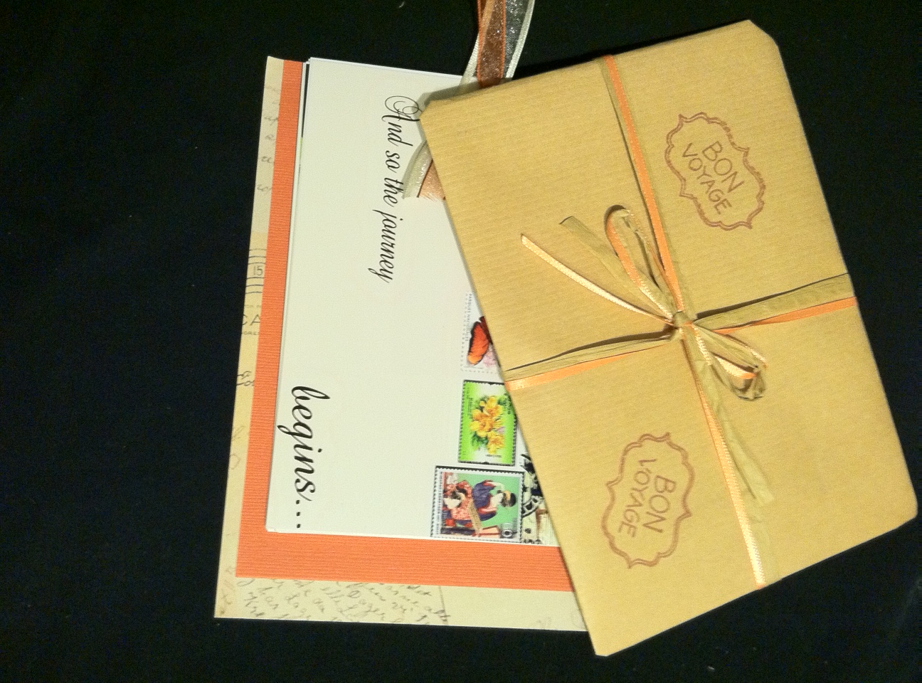She hole punched (with the help of her hubby’s power drill), and bradded these babies together like a book. Then, wrapped them in brown paper bag type paper wrapped with twine so they looked like little packages.